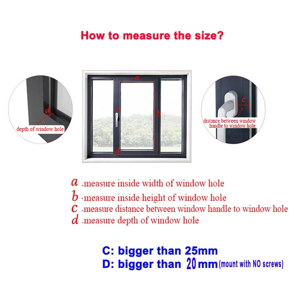 Please note: the depth of window hole should bigger than 2 cm. The distance between window handle to window hole should bigger than 2.5cm.